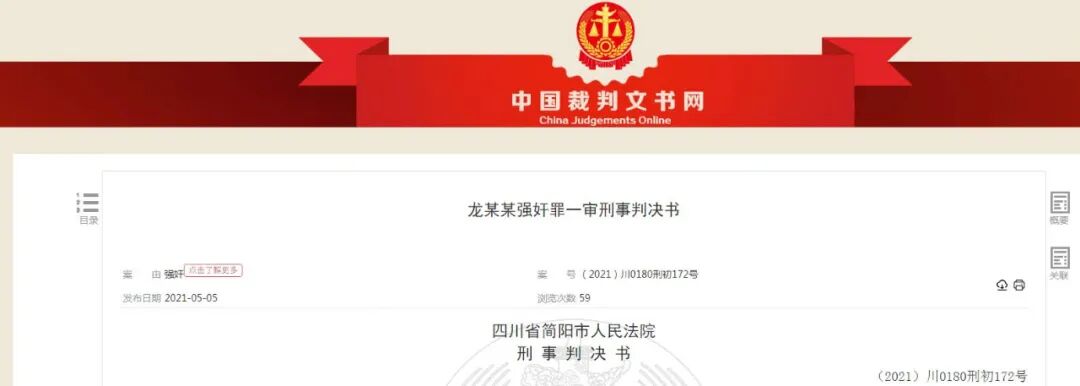 图片来源于网络四川省简阳市人民检察院以川简检未刑诉〔2021〕4号起诉书指控被告人龙某某犯强奸罪,于2021年3月23日向本院提起公诉,并建议适用简易程序。本院依法适用简易程序,组成合议庭,因涉及个人隐私,不公开开庭审理了本案。简阳市人民检察院指派检察员何雨珊出庭支持公诉,被告人龙某某在简阳市看守所通过远程视频参加庭审,指定辩护人高谦到庭参加诉讼。现已审理终结。 犯案过程