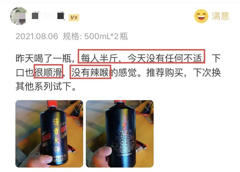 纯粮酿造,5斤粮食酿1斤酒,不勾兑任何食用酒精、香精,这瓶酒不上头,喝完之后酒气消散快,睡醒后不头晕、不头疼,完全不用担心会耽误第二天的正事。