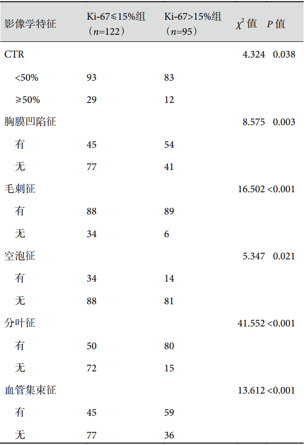 Ki-67与CT影像学特征预测肺腺癌浸润程度的临床研究