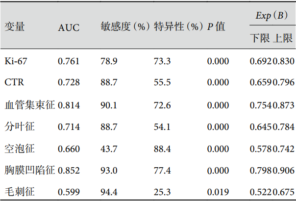 2.5 CT影像学特征联合Ki-67预测肺腺癌浸润程度