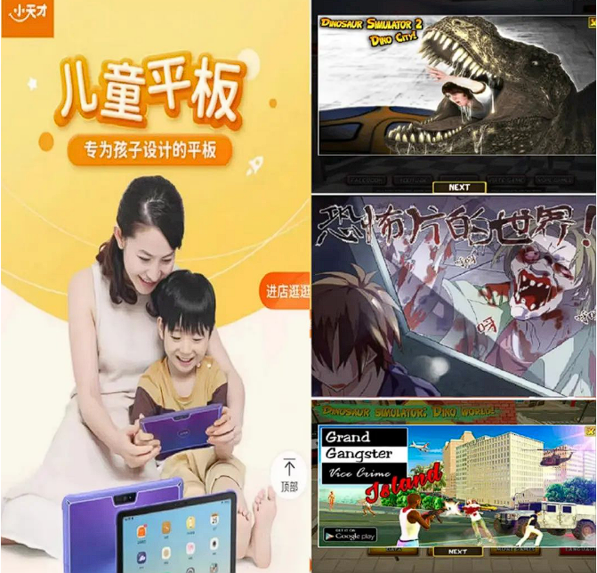 但很奇怪的是,它就是能从某天才学习平板的也应用商店里随意下载,被无数未成年人参观体验。