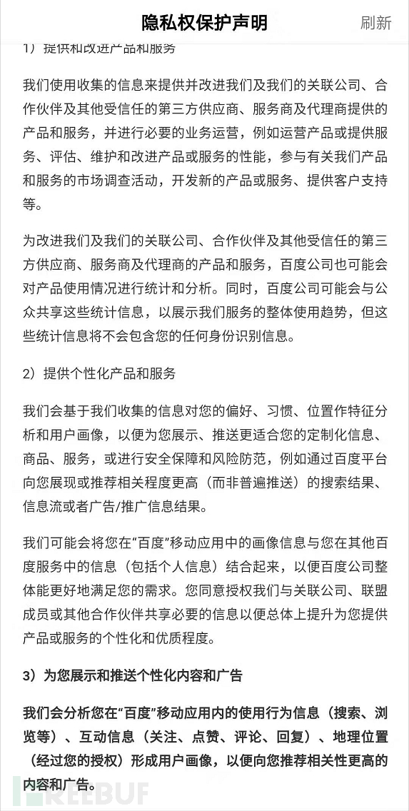 这里的标准不好度量,但是总体上说百度和微信的隐私政策整体布局还是比较好的。
