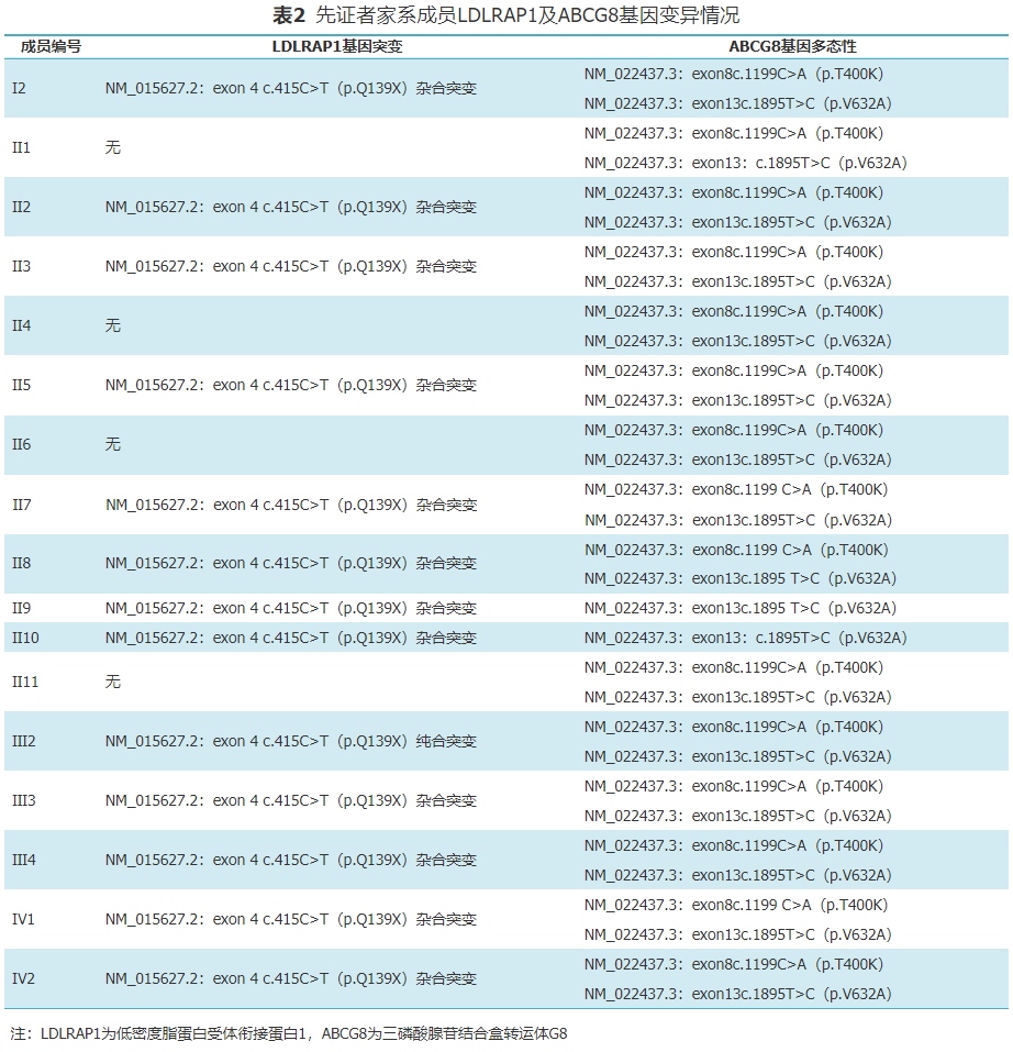【论著】同时伴有LDLRAP1及ABCG8基因异常的家族性高胆固醇血症一家系的临