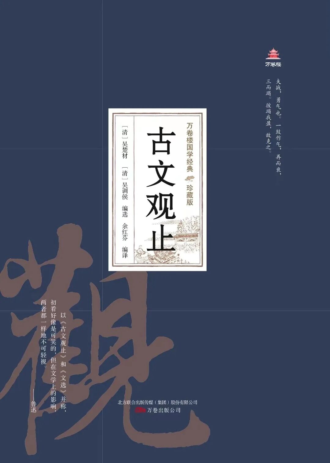 《古文观止》是一部流传极广、影响极大的中国历代散文精华选集,为当时读书人的启蒙读物。书中选编了上起东周下至明代的作品,其中绝大多数为古文,个别为骈文中的经典作品,作品题材涉及史传、策论、游记、书信、笔记等,由于古文观止入选作品题材广泛、代表性强、语言简洁易明,篇幅短小精髓,言辞优美,非常适合初涉文言文的儿童,因而成为文言文教学的经典教材。