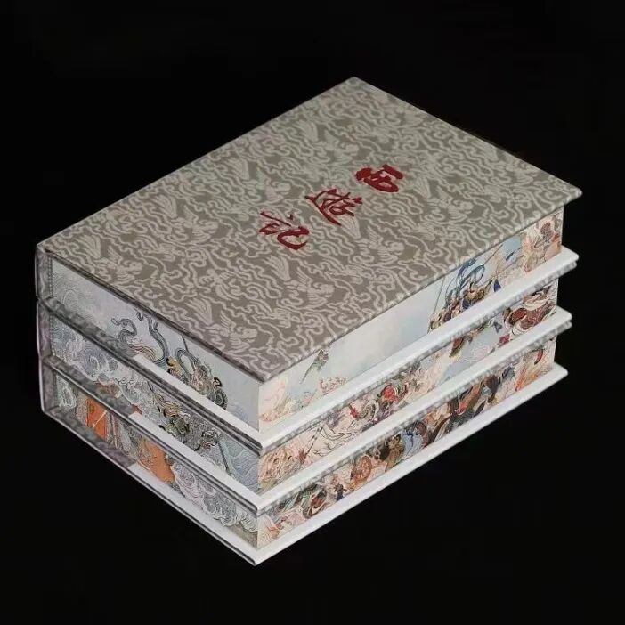 1985年,人文社制作了一套四大名著的特装本,16开精装,每册均有函盒,书顶刷金,内页彩色插图均为手工单独粘贴。