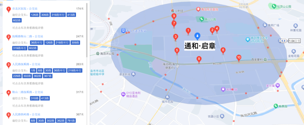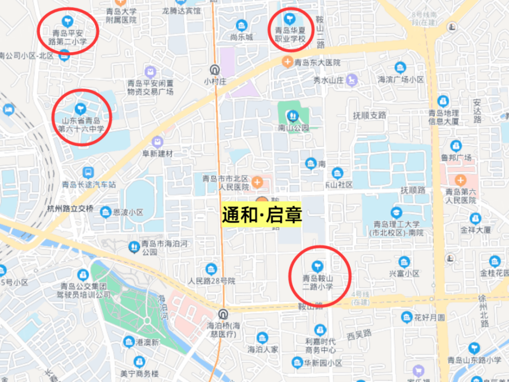 地铁M4号线与M1号线交汇之地,不论是去西部老城区,还是去崂山浮山后,都很方便。而且周边的公交四通八达,所以从通勤的便利度而言,浮山后、张村河的改善楼盘,都比通和·启章略逊一筹。