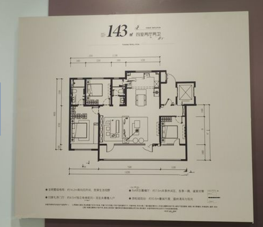 全明通透元宝户,宽厅和跑道阳台,这个户型你很难在挑出什么毛病来。而且开发商比较诚信,在户型图上标注尺寸,所以说户型这一点接近完美。