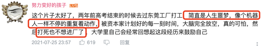 这又何尝不是数十万、数百万把自己最美好的青春亲手埋葬在流水线上的,辍学学生的人生写照?