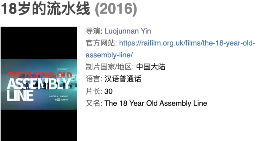 加速!加速!这是导演@殷骆(Luojunnan Yin),在2016年拍摄于东莞某工厂的纪录短片《18岁的流水线》。