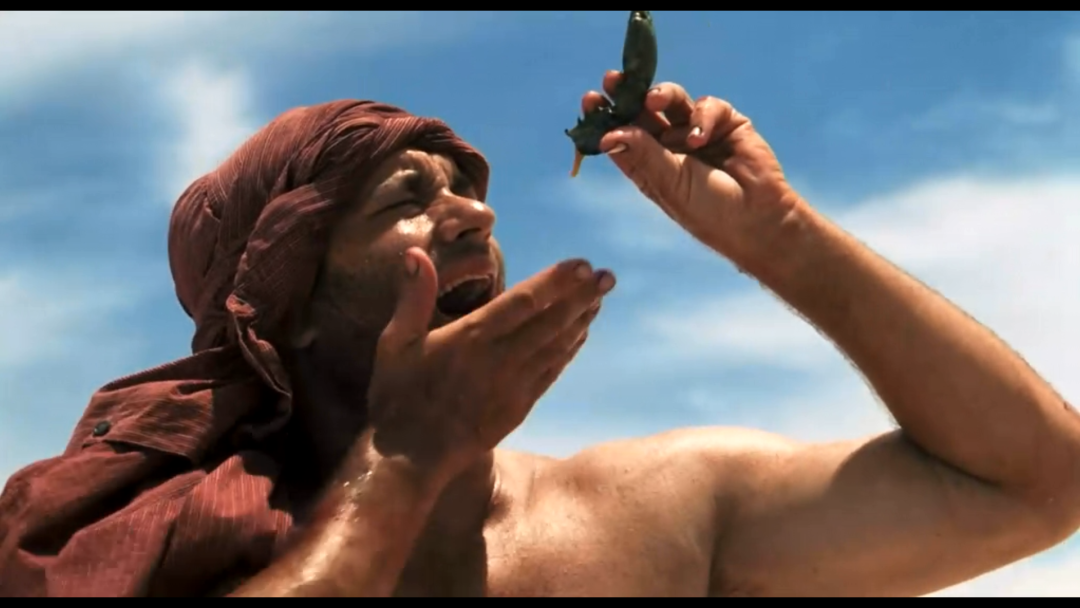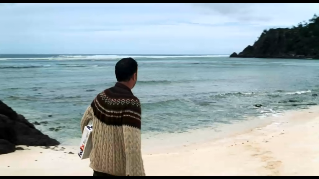 最触动我的情节设置是那颗“威尔逊”球的象征意义。查克日常与威尔逊谈话交流、商讨方案,将他视为知己般,也对它发脾气,将它踢出山洞,随后找回,又向它道歉,查克真正将威尔逊视为自己的一部分,他甚至不惜忍耐皮肉之痛,用自己的鲜血为威尔逊重新上色。或许在那个毒虫不多的荒岛求生不可怕,可怕的是失去了对生的希望。