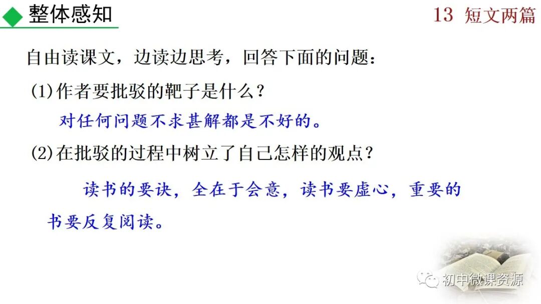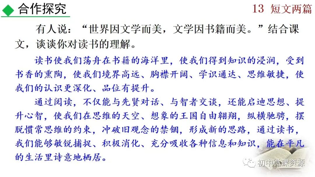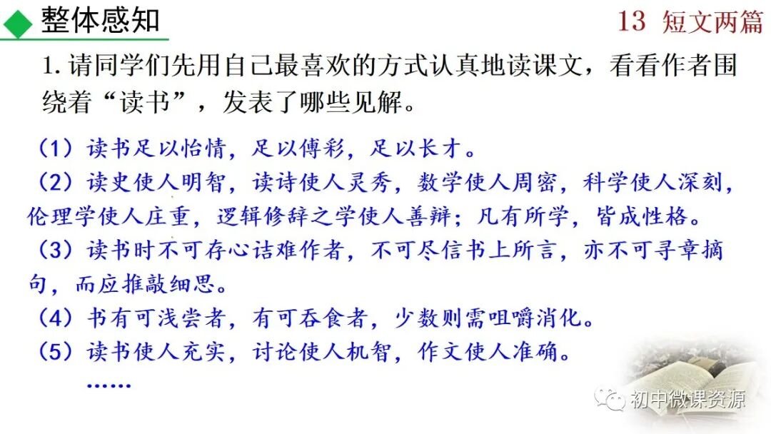 通过对两篇短文的学习,你对读书有什么新的认识,谈一谈你的看法。