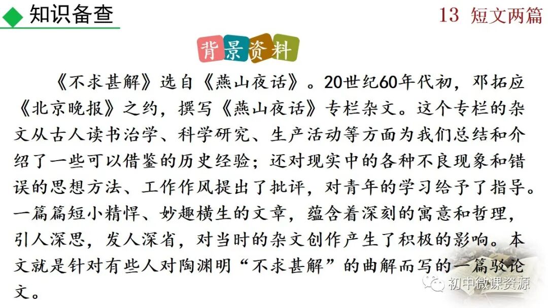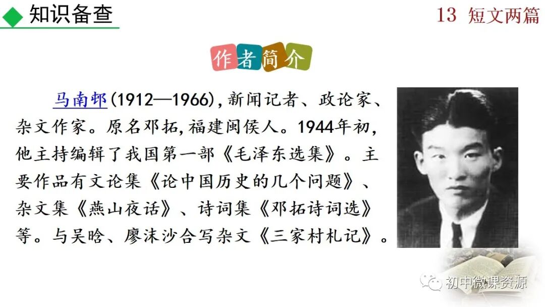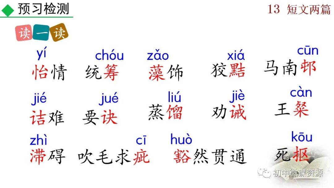 统编版九年级语文下册第13课《短文两篇》朗读+微课视频+知识点