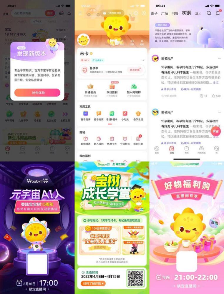 为满足日新月异、不断升级的用户需求与母婴家庭产业发展趋势,2022年3月,国内头部母婴社区平台宝宝树升级发布“三横三纵”战略献礼自己的15岁生日,同时升级品牌愿景和使命,致力于“构建全球母婴家庭幸福生态系统”,“满足新一代母婴用户优生优育、交流交友、健康成长、优选购物四大需求,让全球母婴家庭享受美好的生命旅程”。据悉,此次宝宝树品牌升级包括愿景使命升级、IP形象升级、VI体系升级等。