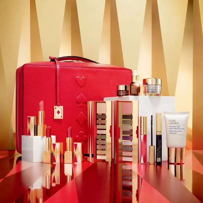 今年的雅诗兰黛圣诞限定可是相当的豪华,不仅附带有扑克牌主题的大气收纳包,套装的内容也足以让雅诗兰黛的粉丝大呼过瘾,让准备入坑的小白们蠢蠢欲动。从官方给出的宣传图就可以感受到不一般的奢华。不仅有两种眼影&腮红的彩妆重头戏,还有限定包装的口红睫毛膏等,更有明星护肤系列,让你从内精致到外。