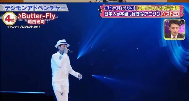 排在第四名的是和田光司的「Butter-Fly」,这首歌是动画《数码宝贝》第一季的主片头曲,也是在中国知名度最高的日本动漫歌曲之一。