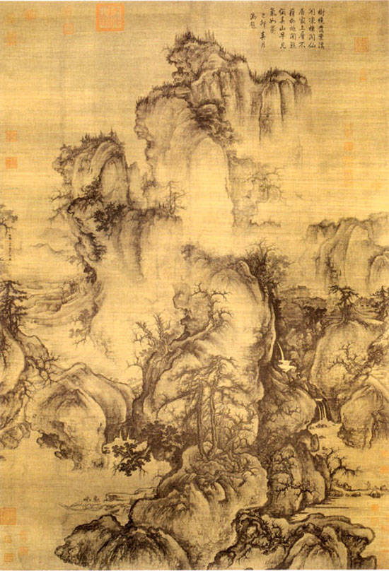 这幅画的主要景物集中在中轴线上,以全景式高远、平远、深远相结合之构图,表现初春时北方高山大壑的雄伟气势。现藏于台北故宫博物院。
