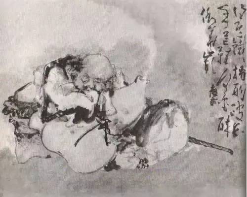 画面上几乎没有对仙人做严谨工致的细节刻画,而是通体以泼洒般的淋漓水墨抒写。绝妙地表现出仙人既洞察世事,又难得糊涂的精神状态和性格特征。
