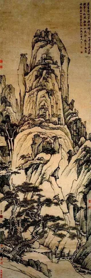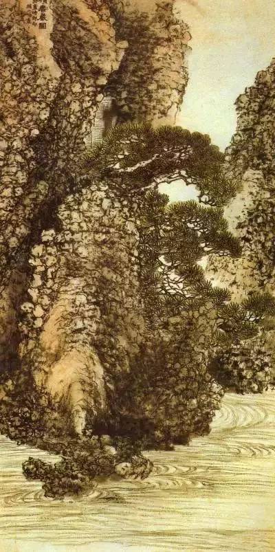 画面描绘了悬崖峭壁古松虬曲,松针茂密,枝干如盘龙蛟出。远处主峰直指云霄,危崖之上奇松点点,山腰又有流泉,直泻而下的情景。作品现藏于南京博物院。