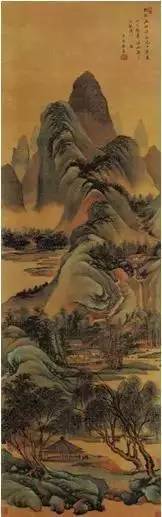 此画是一幅绢本水墨立轴,表现了山川大地的宏伟壮丽。画家以散点透视法,将丰富的景物巧妙地组织在一个画面中,构图严谨,用墨精润,空间感得以充分表现。