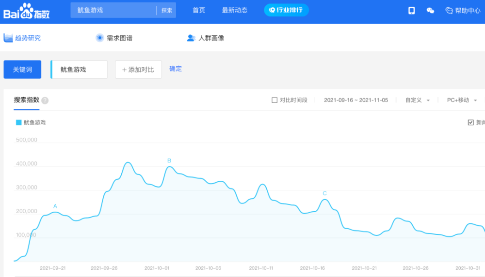 结合百度指数可以发现,《鱿鱼游戏》播出后恰逢国内十一黄金周,对于宅在家里的人群而言,作为剧情和画面都十分到位的爽剧《鱿鱼游戏》是非常不错刷剧选择。十一假期《鱿鱼游戏》的讨论度和搜索度达到高峰。