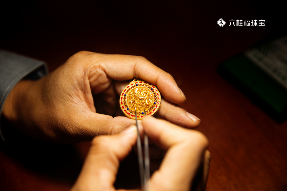 其中传承是六桂福对“六桂联芳”千年文化的溯源与继承;传艺是六桂福承袭祖传东方宫廷珠宝技艺“四代接力”的坚持;传创是六桂福将中国传统文化与搂胎、锤揲、修金、錾刻、花丝、镶嵌等“六韵古法”工艺融于现代珠宝创作;传送则是六桂福独创“五感六觉”文化终端,通过情景营造加强顾客的精神体验,触达顾客深层次情感诉求;传递则为六桂福将消费者心中的“挚爱甄选”情寄珠宝,通过一系列具有品牌特色的文化IP珠宝,传递爱与温度,传递美与幸福;传世则是六桂福通过打造兼具“东方之魂与现代之美”的国创臻品,将东方文化珠宝的定位夯实,唤醒行业应有的文化自信的同时,让东方文化珠宝“活”起来,真正做到“不负古人,留赠来者”。