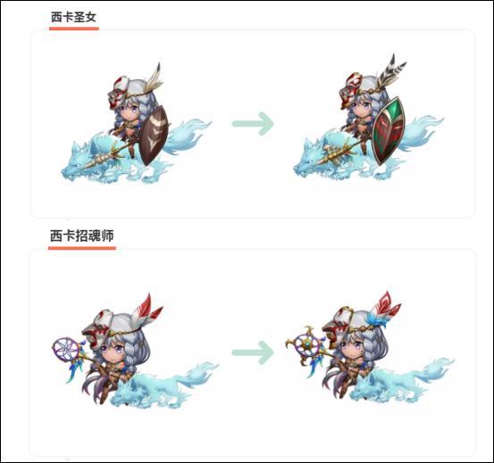 而在昨晚公布的最新消息中,这位西卡族美少女阿卡娅(CV:丰崎爱生)终于出现在我们面前。从目前放出的人物设定我们可以看出这是一位召唤专精的英雄,除了初始法师职业“西卡侍女”外,共有两条转职路线,分别是骑兵的“西卡圣女”以及召唤流法师的“西卡招魂师”。