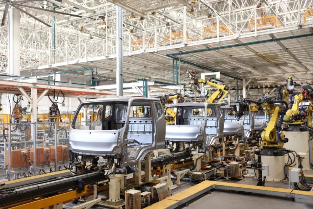 在位于肥西县桃花工业园新港南区的江淮汽车高端轻卡基地,工作人员正在紧张作业。全媒体记者 宋炎骏 摄