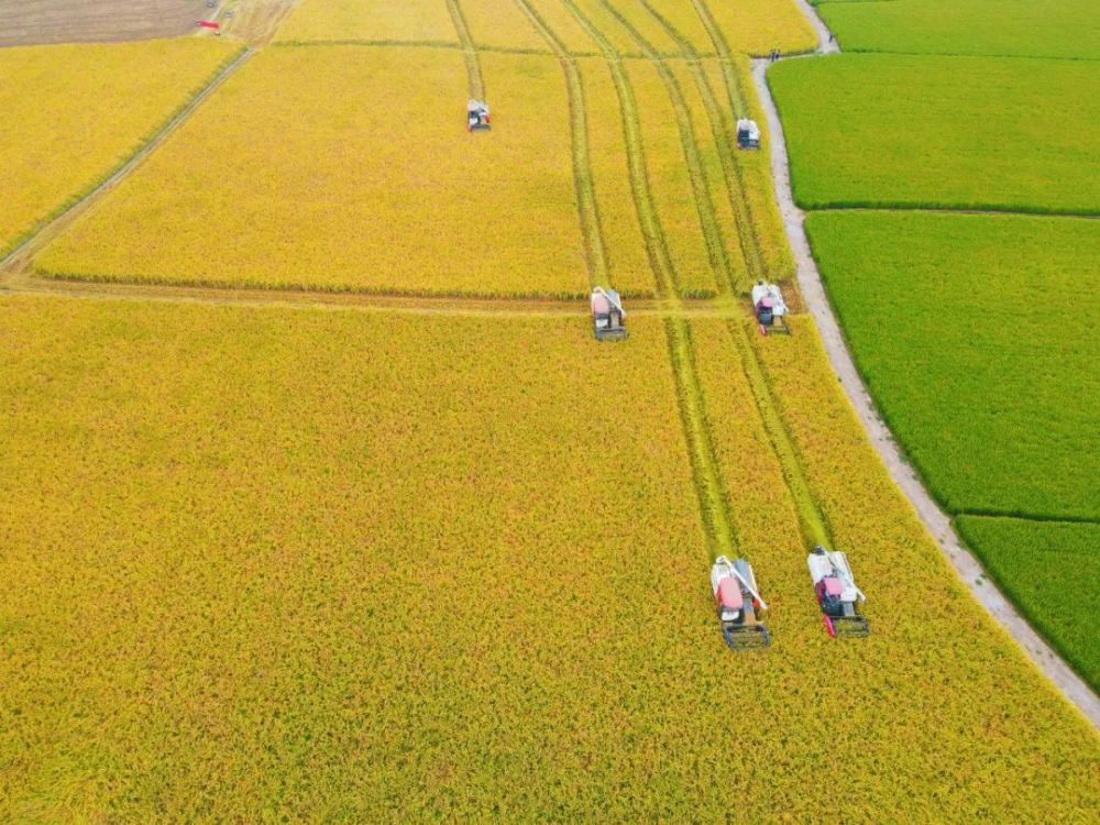 肥西县花岗镇秋粮收割现场。马家贵 全媒体记者 宋炎骏 摄