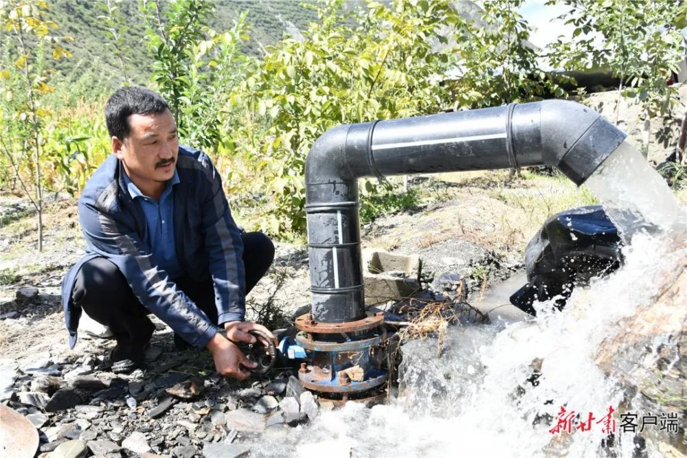 李西让扭动阀门,白龙江水灌溉进田地里。