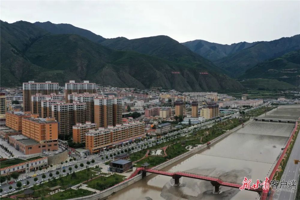 航拍下的迭部县城,两岸绿意正浓,水面偶尔翻起浪花——这是白龙江流域城市的缩影。
