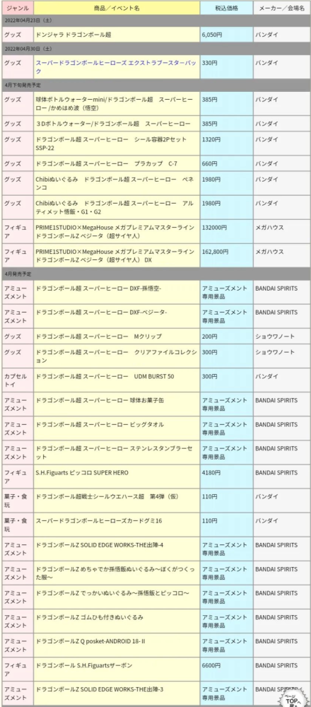 资讯|2022年4月-10月 龙珠手办 发售计划