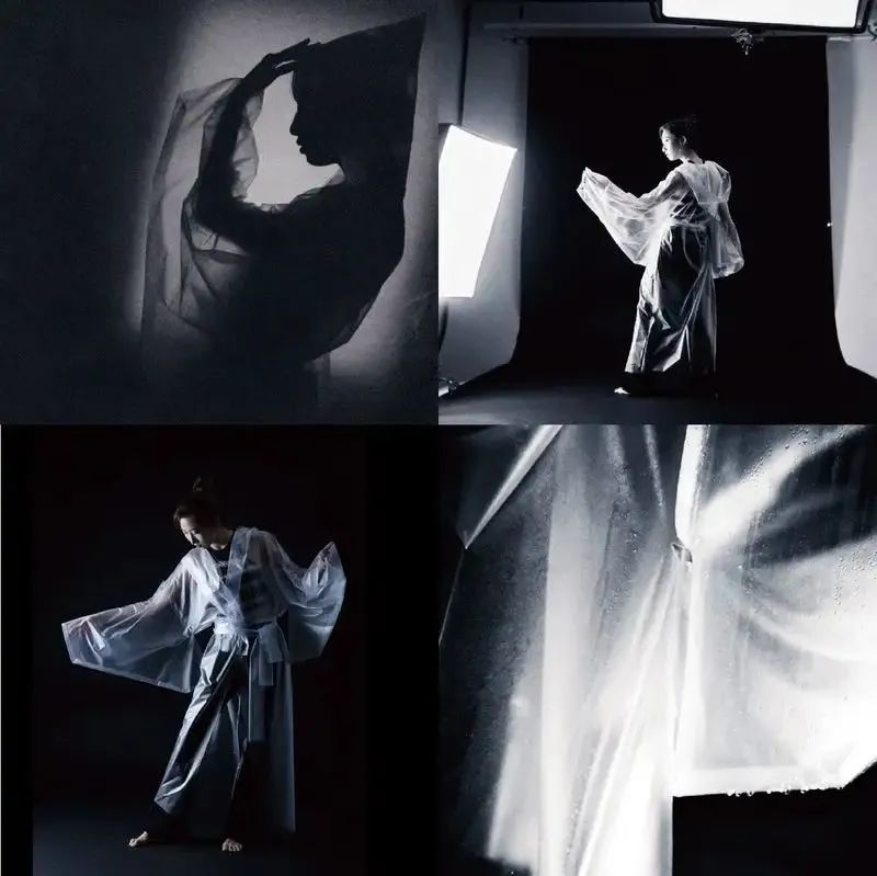 我想让雨和人之间的关系变得愉快而不是压抑,所以我创造了在潮湿时能展现美丽图案的衣服。