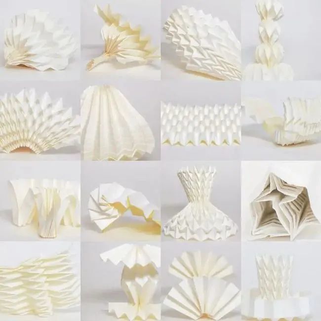 我用纸制作了一款 可变产品,既环保又防水 。具体来说,我设计了花瓶、碗、杯子等日常生活中的工具,利用褶皱的变化。由于它们的形状多变,可以瞬间变成各种物体,而不被单一角色所束缚。