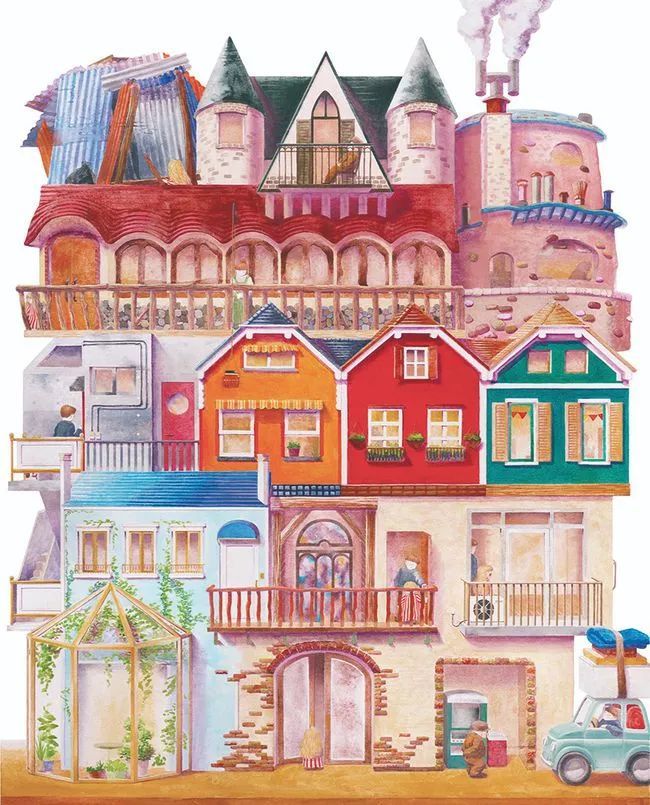 绘本打开后上下左右依顺序翻开,故事逐渐推进,场景不断替换,最后形成一个完整的故事,称得上是匠心巧妙!
