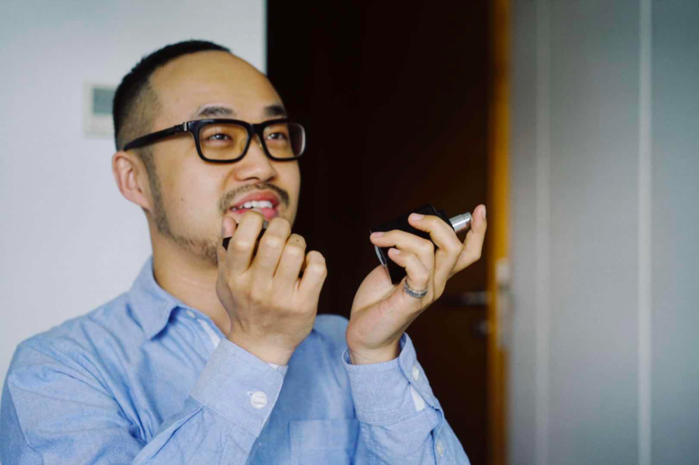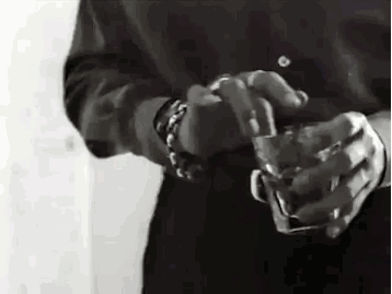 接着,他用手指沾了威士忌,抹到耳后,直接拿它当香水!