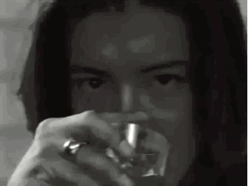 抹完之后,再端起酒杯开喝,整套动作行云流水,优雅又色气。眼神多情,让人无力招架。