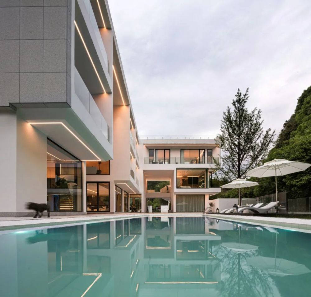 无法住到森林里,那就把森林请回家吧,5亩的地只用了280坪做落地建筑,9间房私享露台,落地窗直面青山……