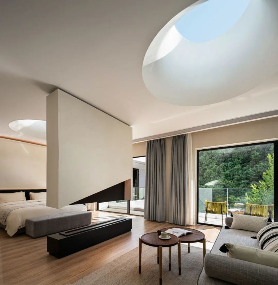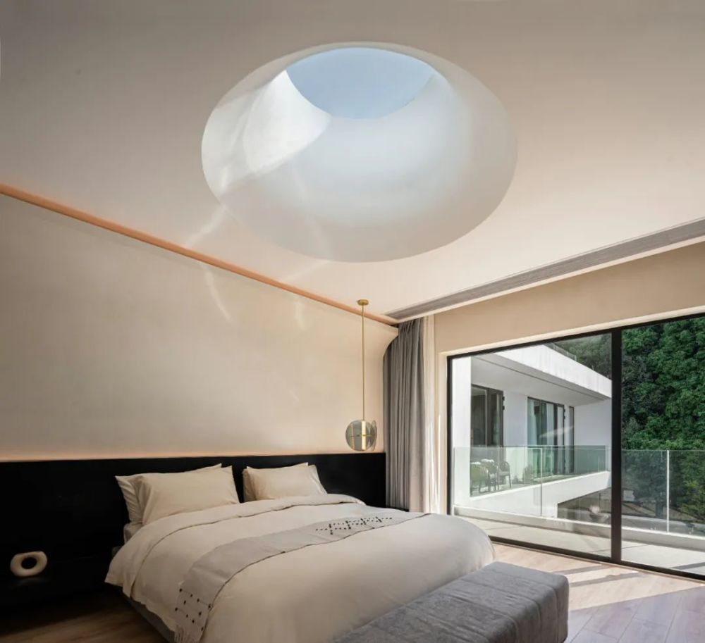 小编最爱“枫”,圆顶天窗把自然光从房顶灌注到室内,昼看蓝天白云,夜观璀璨星象,可太浪漫了吧。