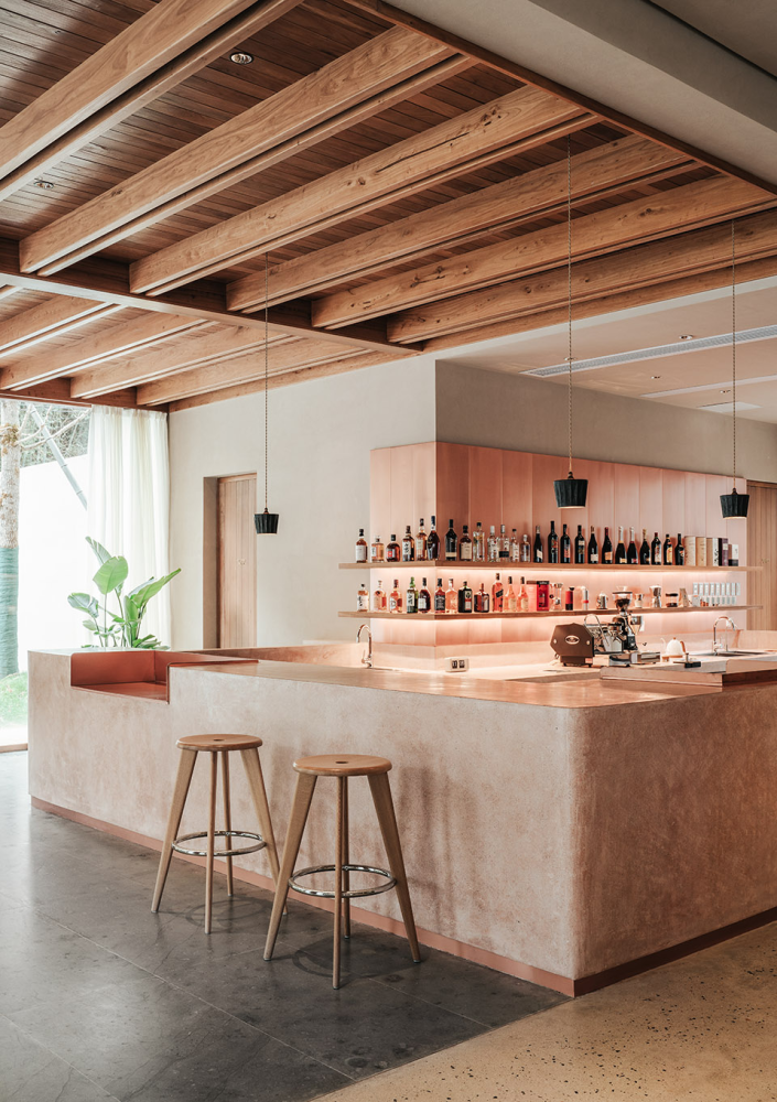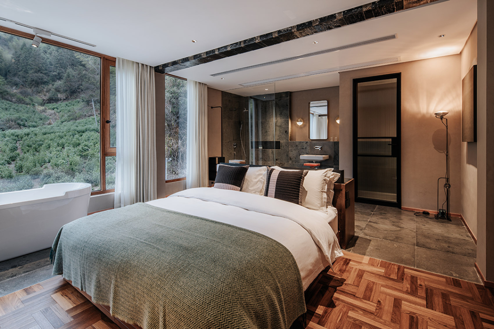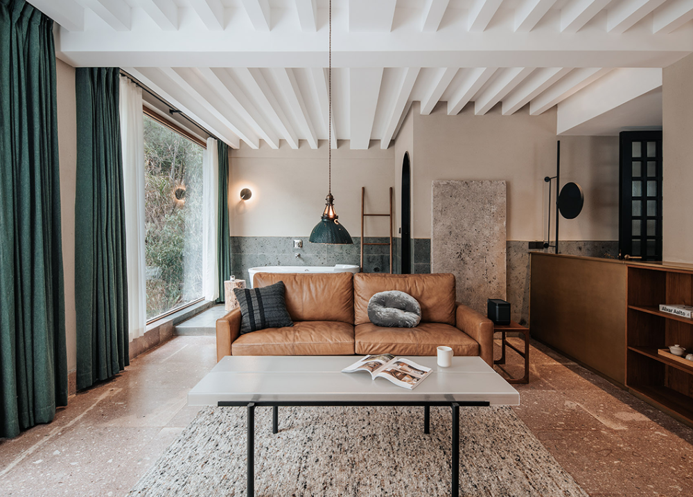 民宿颜值满分,告别了灰白冷色调,换成了暖暖的原木色,从禅意茶室到时髦酒吧,都演绎着现代轻奢气质。