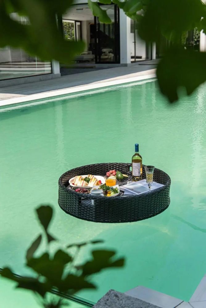 “一处无边泳池美了一整个民宿”,在直面杉树林的透明泳池,吃一顿丰盛的漂浮早餐,wow,夏天的味道。