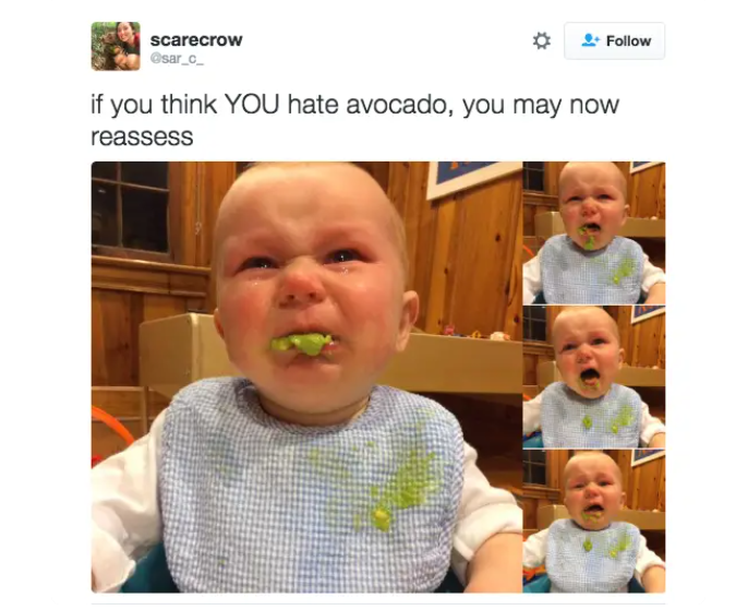 就连习惯吃“糊糊”的小婴儿中也有不爱吃牛油果的图片来源:buzzfeed