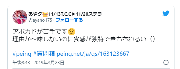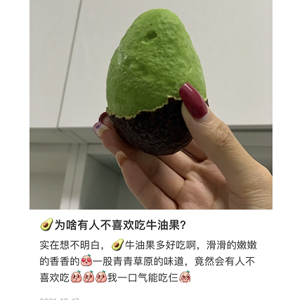 日本网友あやタ不喜欢牛油果的原因是:“没啥味道并且质地很‘独特’”