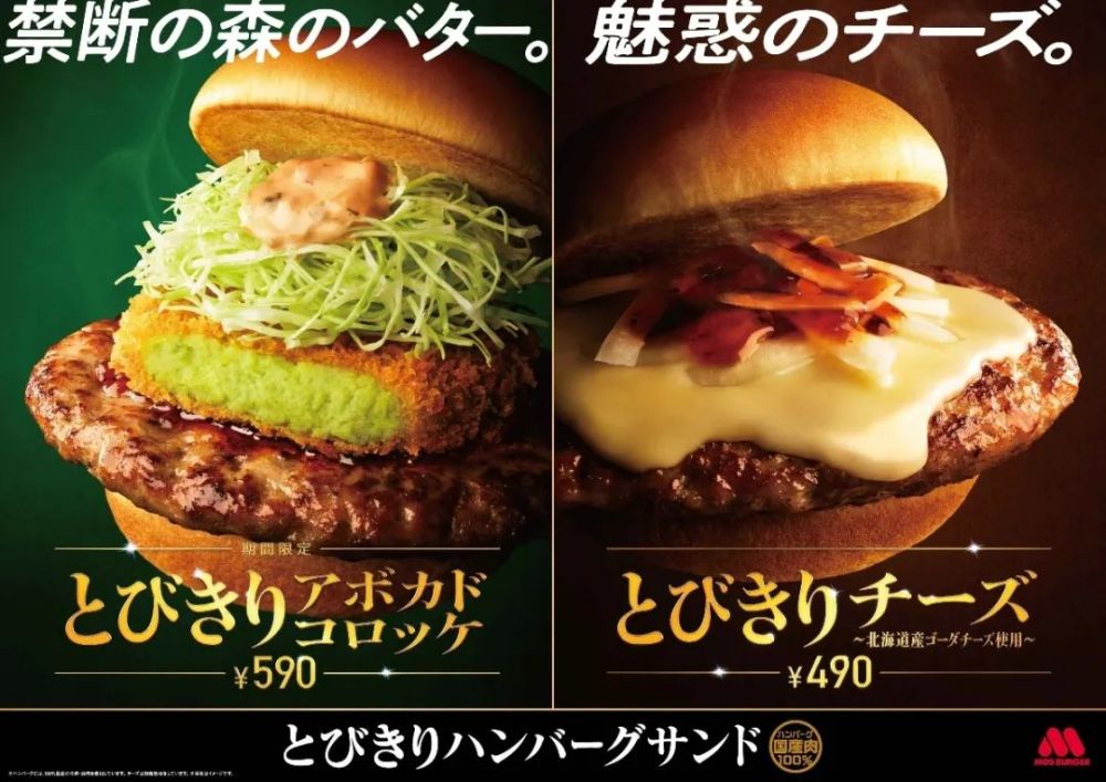 限量发售的牛油果可乐饼汉堡(左)图片来源:MOS BURGER