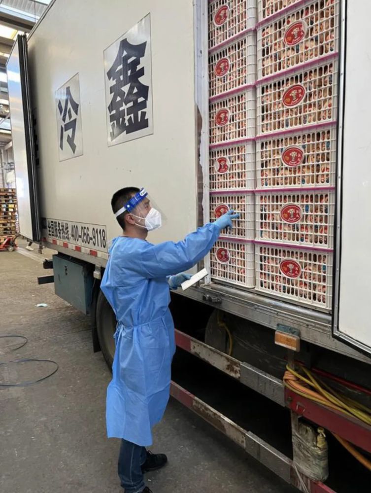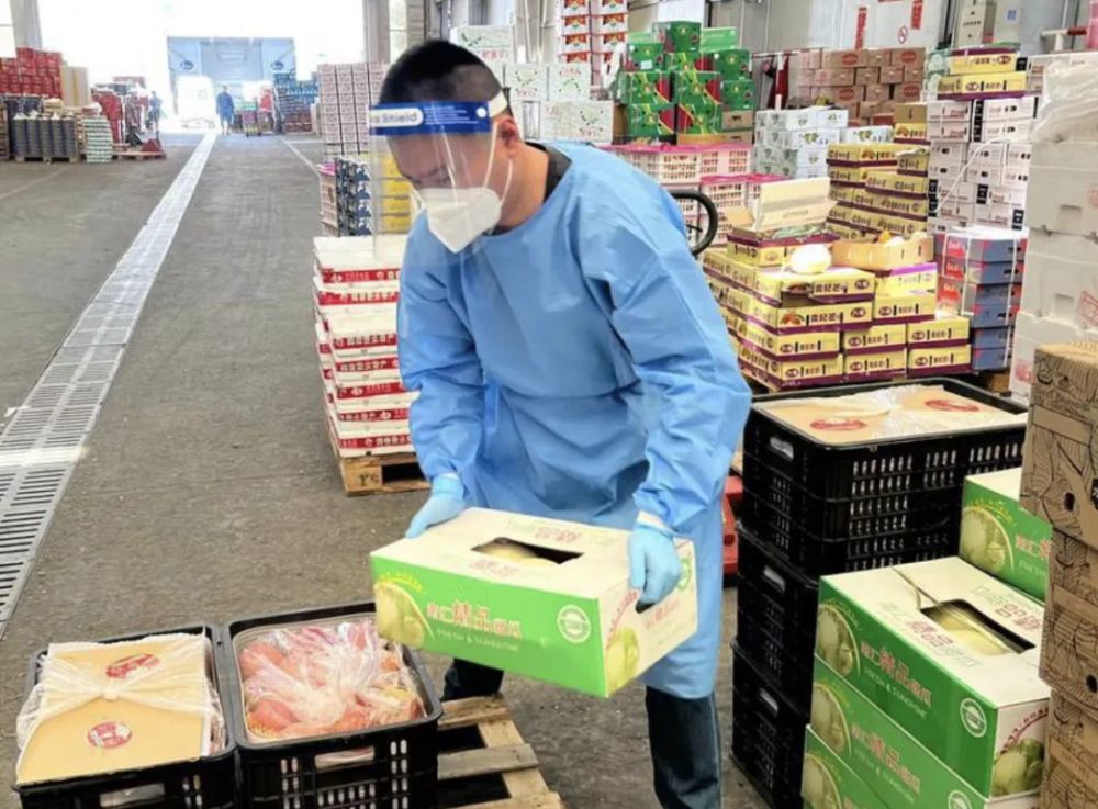 进入市场的进口水果则必须持有“三证一单”,即检验检疫证、消杀证、核酸检测报告和报关单,现场再次消杀后经过静默期才能销售。同时,市场采用无接触经营模式,供应商线上接单,线下分拣配送,采购商到场不下车提货。这一套流程都在韦贤忠和同事们的服务和监督下严格完成。