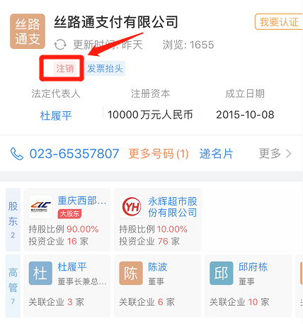 据瞭望消金所知,丝路通支付并未拿到支付牌照。企查查上其股东信息显示,永辉的参股份额仅10%,当前公司状态为“注销”。