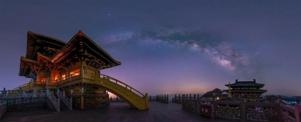 金风玉露一相逢,便胜却人间无数。秦观的《鹊桥仙》诉说了重逢的惊喜,而春季星空的银河拱桥也惊喜地与地上金顶的桥相逢。天地相遇双桥辉映,我在人间,却胜却无数。