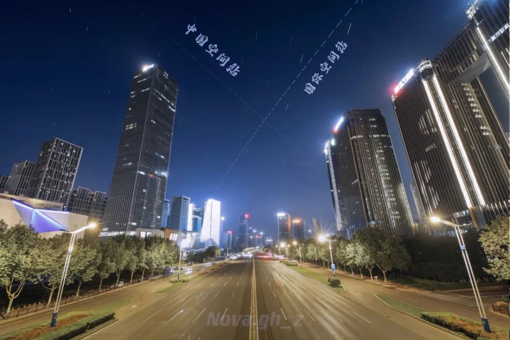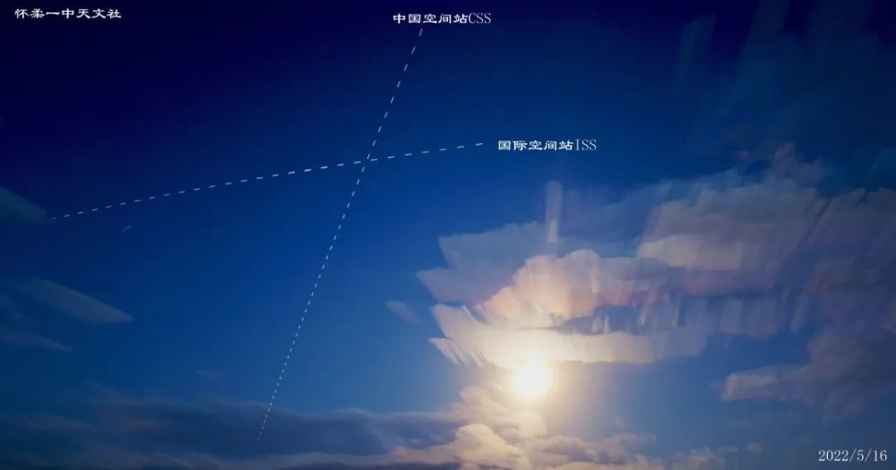 2022年5月15日,晚上8点前后,中国空间站与国际空间站在济南经十路的上空划出一个有趣的“X”。