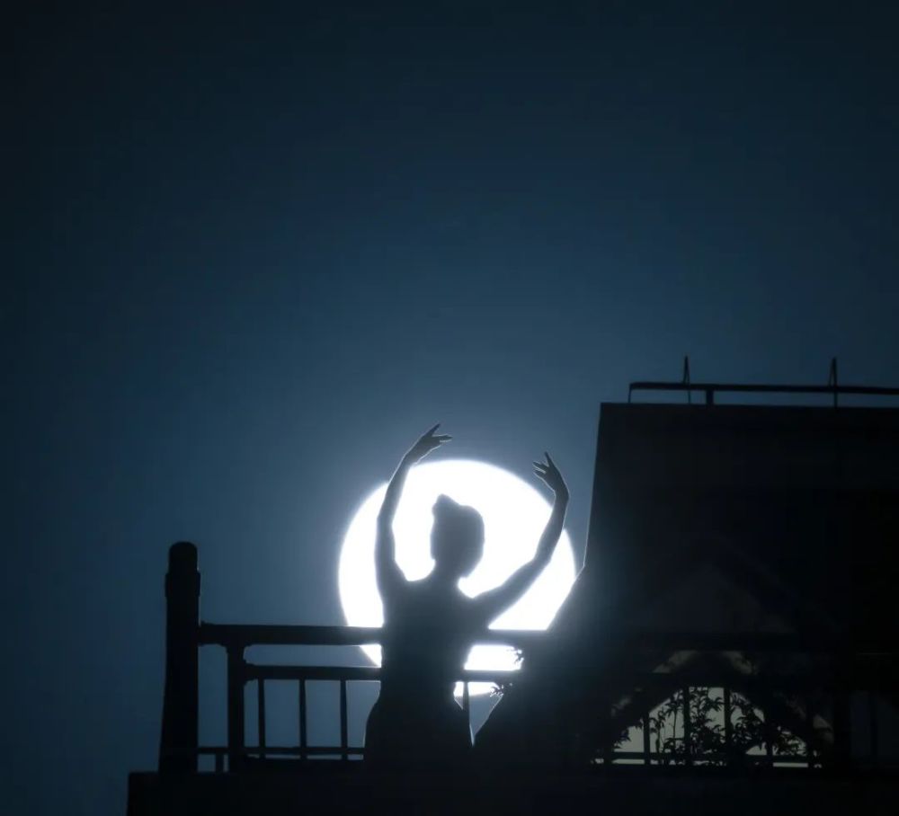 小区封控着,刚好遇到满月,只能请顶楼的邻居在露台上当模特。在月光下,一曲《天鹅湖》,如此宁静,愿疫情早日结束。