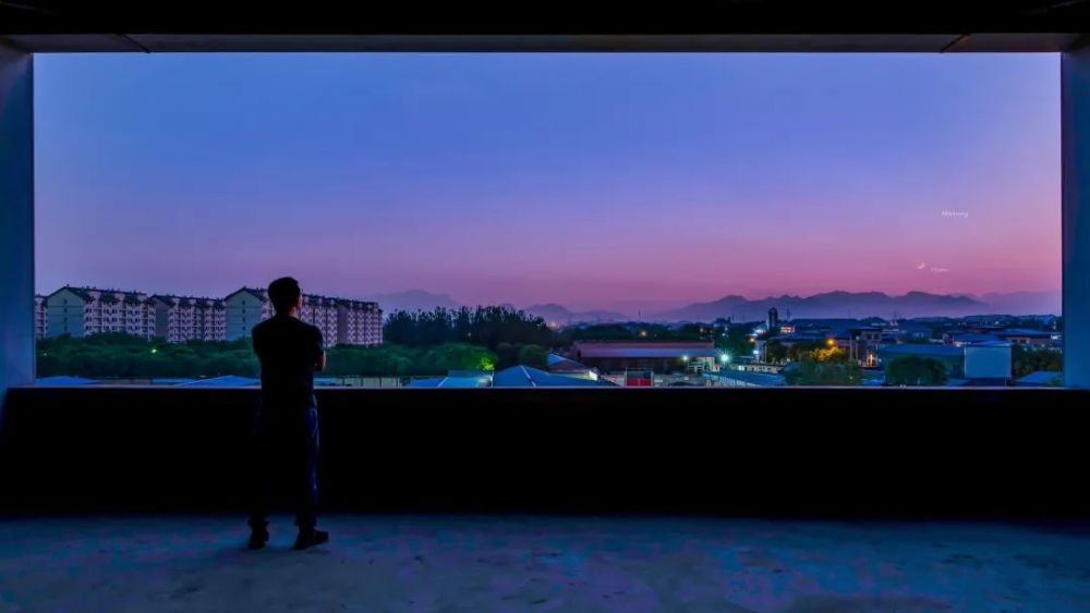 简单而又不简单的美景,有时候就在身边。5月2日傍晚,一轮金色的娥眉月迎来了伴随它的昴星团和水星,随着太阳逐渐落下,水星和月亮逐渐清晰起来,遗憾的是当天不高的能见度没能看见昴星团,但幸运的是远方的美景已经足以让人流连忘返。停车楼的框架刚好是一副天然的画框,于是用相机定时拍照赶紧记录下人与自然合而为一的美景。