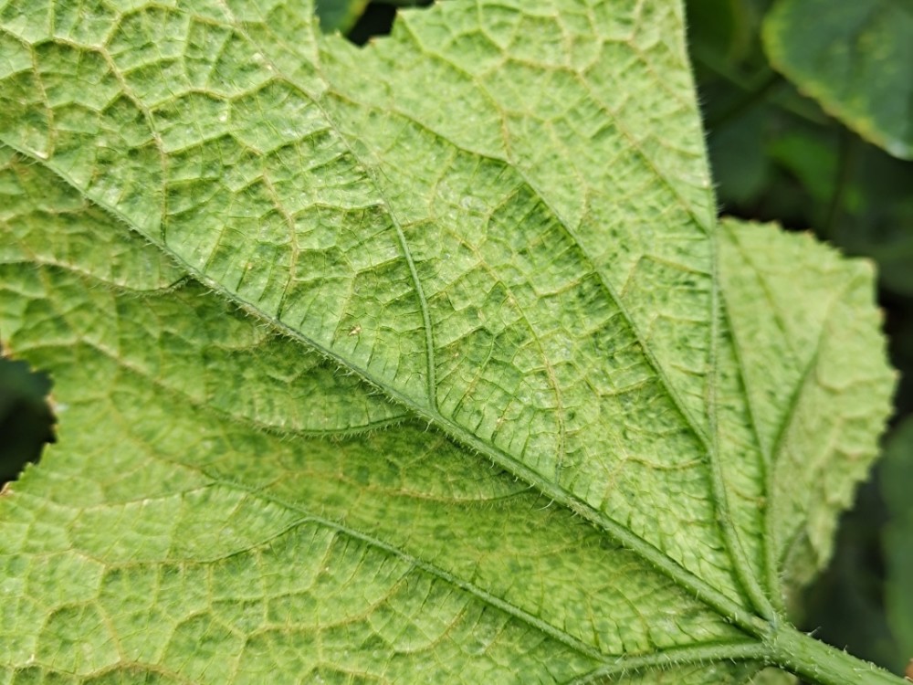 6月29日来自山东潍坊市的农管家用户害谷发来图片向农管家的专家咨询:“黄瓜正面叶片褪绿,叶背叶脉黄化,这是什么病?”下面一起来看看专家是如何解答的。